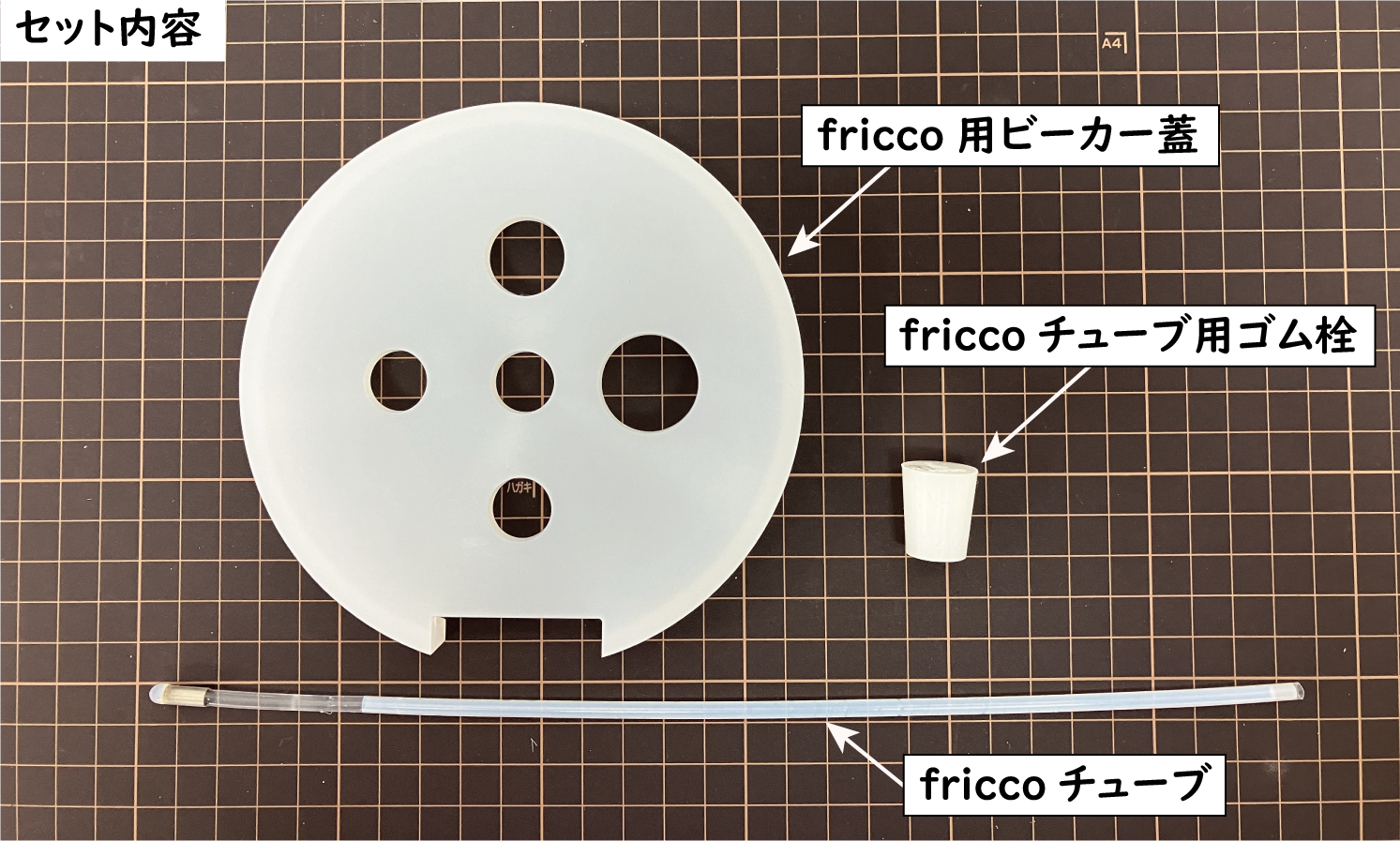 ビーカーフタ・friccoチューブ・チューブ用ゴム栓の3点セットで販売しております。