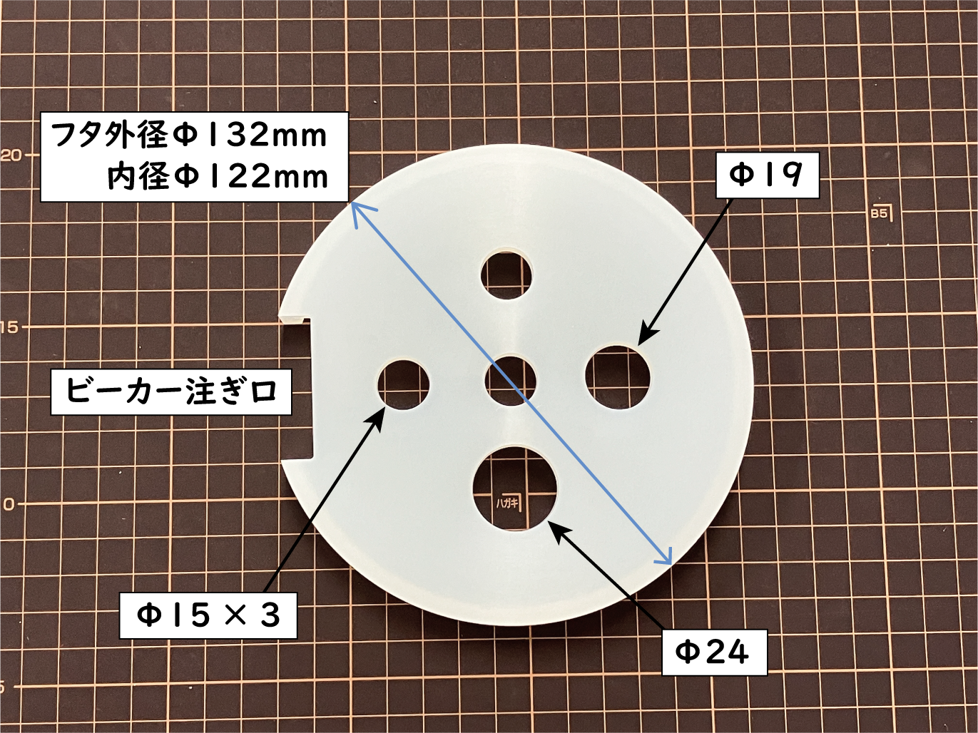 フタのサイズは外径Φ132mm、内寸Φ122mmです。