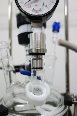 フラスコの容器内がどれくらい減圧されているのかを目で確認できるようにしたいというヒントから誕生したのが、こちらのフラスコ圧力計アダプタです。
