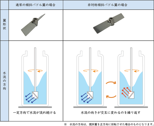 非対称翼とは一言で言っても、形状が少し変わるだけで撹拌効率は変化します。