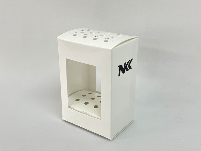 「手軽に持ち運びができるNMRチューブスタンドが欲しい」という要望のもと、実験作業のなかでチューブを何度も持ち運ぶことを想定し片手でも容易に持ち運べるコンパクトなサイズの紙製スタンドとなっております。