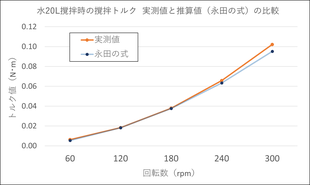 ③ UZU停止後、撹拌トルクの実測値と推算式(永田の式)を比較する。
